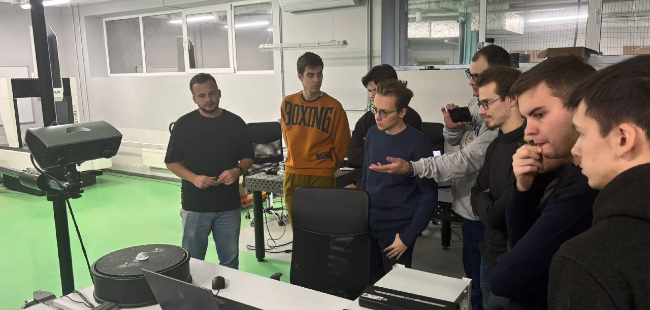 Завершился визит в испытательном техническом центре. Будущим инженерам рассказали о значимости финальных испытаний готовых изделий, продемонстрировали уникальное оборудование, на котором проводятся испытания, подробно объяснили его назначение и принцип работы.