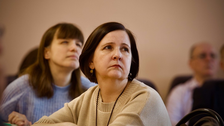 С докладом об организации студенческого научного, конкурсного и олимпиадного движения выступила Кусачёва Светлана Александровна — руководитель СНТО, кандидат биологических наук, доцент, заведующая кафедрой МК11 «Ресурсосберегающие энергосистемы и технологии».